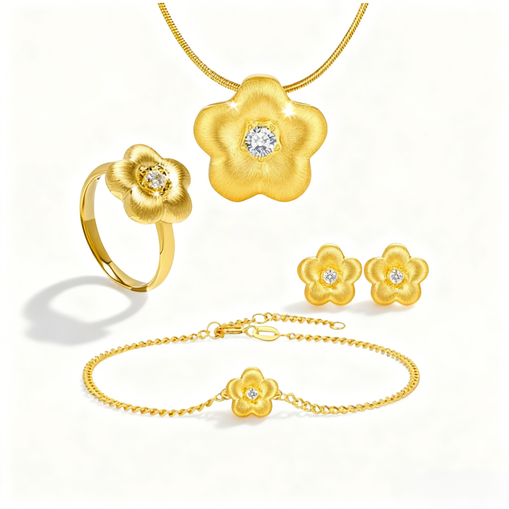 مجموعة مجوهرات فاخرة مرصعة بالألماس ومزينة بزهور ذهبية