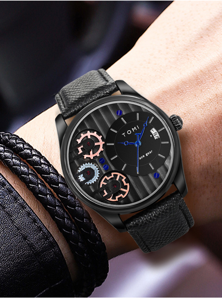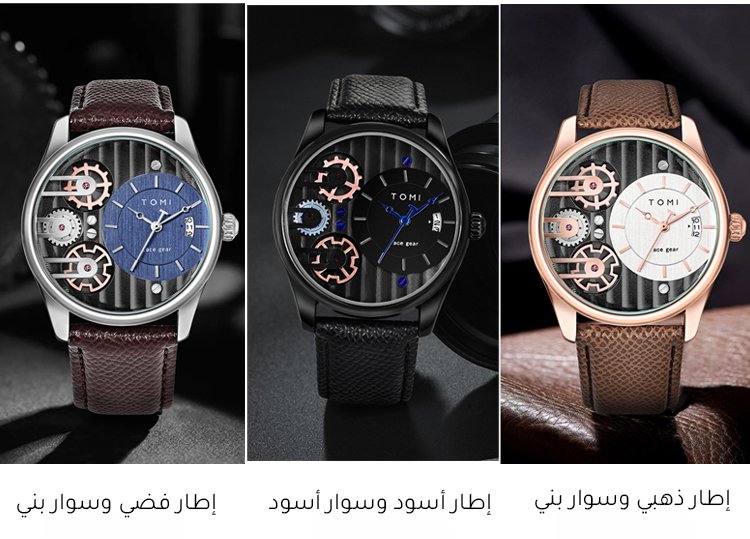 ساعة فاخرة راقية ذات سوار جلدي للرجال (علبة الهدية الرائع بسوار مزدوج)