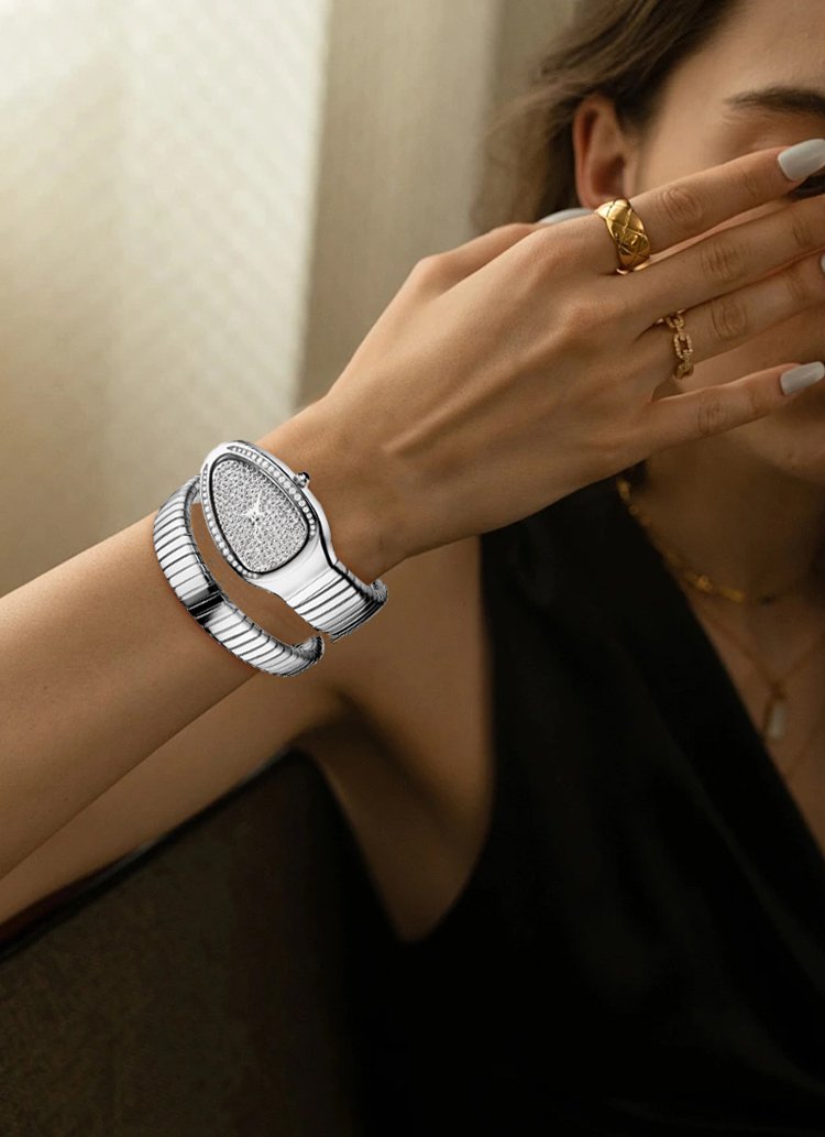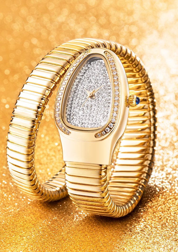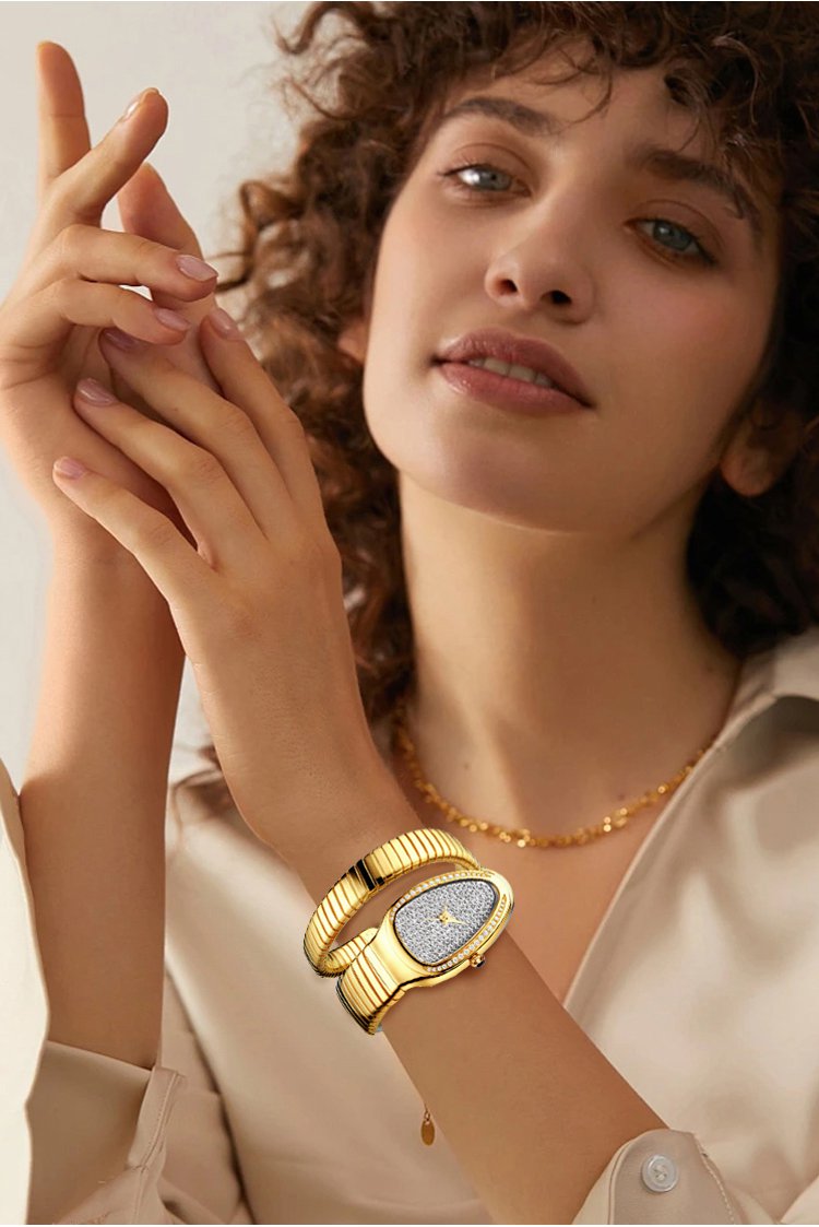 ساعة نسائية مرصعة بالألماس على شكل ثعبان فرنسية