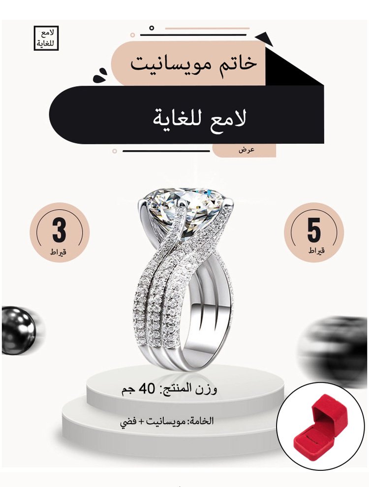"خاتم مرصع بالمويسانيت 5 قيراط،الصنع دقيق، الفخامة متألقة، خصم الماركة في اليوم في الوقت المحدود"